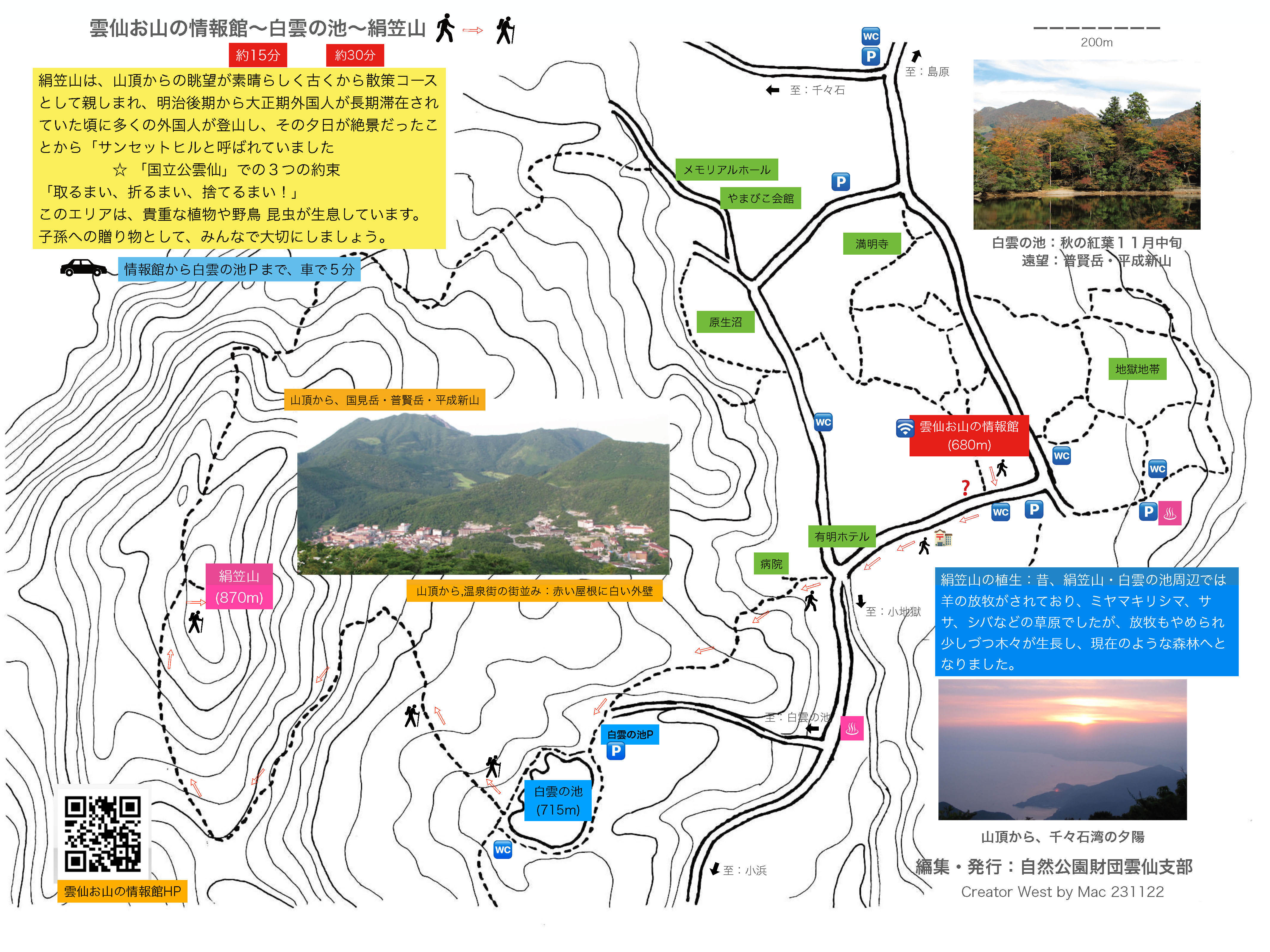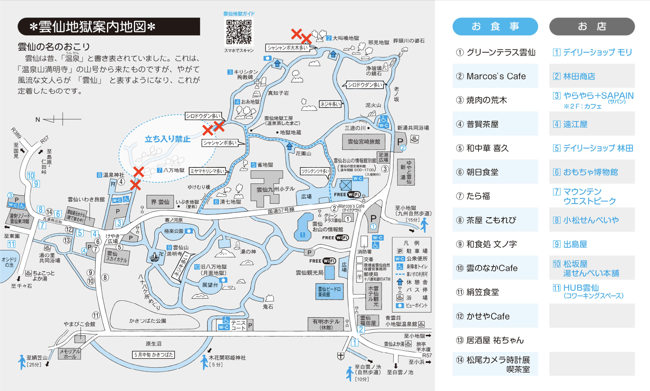 雲仙地獄巡りコース *スマホで下記QRコードを撮影:自然・歴史の詳しい音声案内
